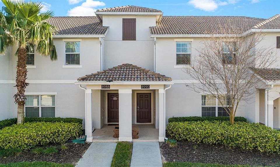 Here’s your chance to own a stunning property in one of Central Florida’s most sought-after luxury resort communities! This beautifully furnished and professionally decorated townhouse, built in 2017, offers the perfect blend of comfort, style, and investment potential. Step inside to discover a bright, open-concept layout that feels both elegant and inviting. The spacious gourmet kitchen flows effortlessly into the dining area and family room, leading out to a covered lanai and private screened-in pool — ideal for relaxing or entertaining guests. Featuring 4 bedrooms, 3 bathrooms, and 1,902 square feet of thoughtfully designed living space, this home also includes a dedicated laundry room and a luxurious master suite. Every detail has been carefully considered, from the ceramic tile in wet areas to the neutral color palette and high-end finishes throughout. Located within the gated Champions Gate Resort, residents and guests enjoy 24-hour security and access to an array of world-class amenities — including two championship golf courses, a resort-style clubhouse, multiple pools, a lazy river, splash park, water slides, fitness center, arcade, theater, and more. With its unbeatable location just minutes from Disney World, Universal Studios, premier shopping, and dining, this property is an exceptional choice for a primary residence, vacation getaway, or income-producing short-term rental. With professional property management already in place and strong booking potential in 2025 and beyond, this home offers a truly effortless ownership experience and an incredible investment opportunity.