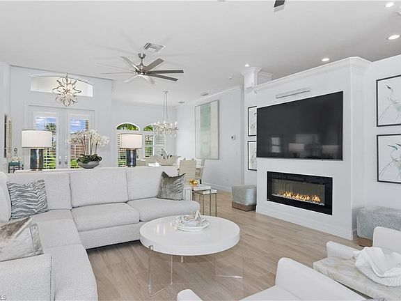 This beautifully renovated and fully furnished 3+den, 2 bath home has one of the best views in Mustang Island at Lely Resort, offers a serene, elevated lifestyle with a chic coastal aesthetic. As you step through the front door, sweeping lake and golf course views immediately greet you, framed perfectly by a dramatic picture window in the screened lanai. Designed with an open, airy feel, the home features high ceilings, a renovated kitchen, updated bathrooms with new vanities, tile and hardware, and a refreshed laundry room. A stunning linear fireplace adds ambiance for cooler winter evenings. Additional enhancements include a whole-house generator, new pool heater, new travertine on the lanai, and numerous other thoughtful upgrades. Outside, the expansive screened lanai showcases a heated in ground pool and spa overlooking the water and golf course—an ideal setting for peaceful mornings or effortless entertaining. As one of the few homes offering optional membership to The Players Club & Spa, owners can enjoy access to a luxurious 15-acre tropical retreat with exceptional dining, spa services, tennis, pickleball and bocce. 8991 Mustang Island Circle stands out as one of the most desirable homes within one of Lely Resort’s most sought-after communities.