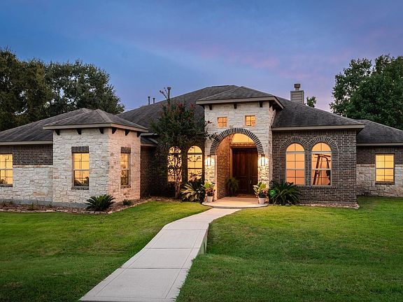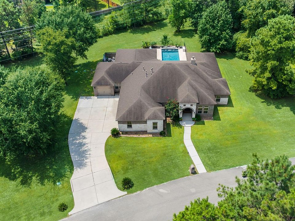Set on a spacious 1.2-acre lot, home offers perfect balance of comfort, functionality, outdoor enjoyment. Inviting entryway finds a dedicated home office and formal dining room. Open-concept living area cozy gas fireplace and large windows that bring in natural light. Kitchen built for everyday living/entertaining, w/granite countertops, large island, breakfast bar, custom cabinets. Primary suite privately tucked away w/large windows overlooking the pool. Ensuite bath w/separate dual sinks, soaking tub, walk-in shower, two separate closets. Enjoy your own personal getaway w/sparkling pool, waterfall feature, stamped concrete patio, covered outdoor space perfect for relaxing/hosting friends. Room to build a workshop, RV garage, etc. Smart layout includes two addt'l bedrooms and flexible media room option as 5th bedroom. Golf cart access to Woodforest. Home offers the space you need—inside and out. Easy access to I-45, Aggie Expressway, The Woodlands, and more!