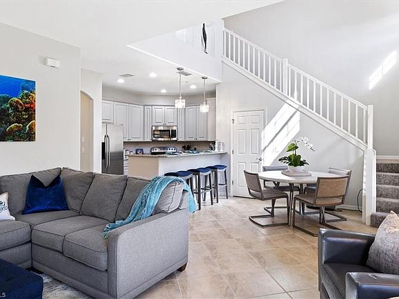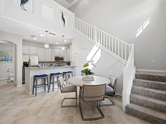 Sunny greetings from this tropical oasis!  Step inside this charming 2 bedroom, 2.5 bath townhome in the highly desirable Lely Resort community of Ole'.  This light and airy property boasts high ceilings, fresh paint, new carpeting upstairs and a new roof.  Enjoy lush outdoor spaces made up of private seating areas, on a quad where you will enjoy an infinity edge pool just steps outside your door.  Sit out on your front porch and take in the mediterranean architecture and all that this vibrant community offers.  The thriving village center offers a resort pool with cascading waterfalls, food and beverage service, a movie theatre, gym, library, pub, bistro, volleyball, bocce ball, tennis, pickle ball, and basketball courts.  Golf enthusiasts can enjoy playing Flamingo Island and Mustang which were designed by Robert Trent Jones, Sr., and Lee Trevino.  These courses combine for 54 holes which Golf Magazine ranked among Naples' Best.  Walking distance to restaurants and shopping, and just minutes to Marco Island and downtown Naples.  Say Ole' to Naples best kept secret!