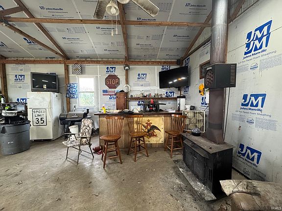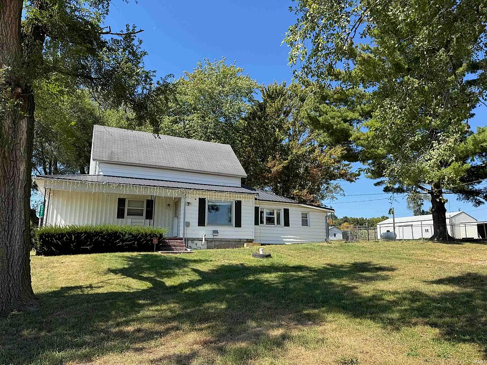 This charming country residence features three bedrooms and one bathroom, set on a spacious one-acre lot. The home boasts a covered front porch and a partially fenced yard, providing a welcoming outdoor space. Additionally, there is a detached two-car garage and a substantial 24 x 48 pole barn equipped with a concrete floor and electricity, offering ample storage and utility options.