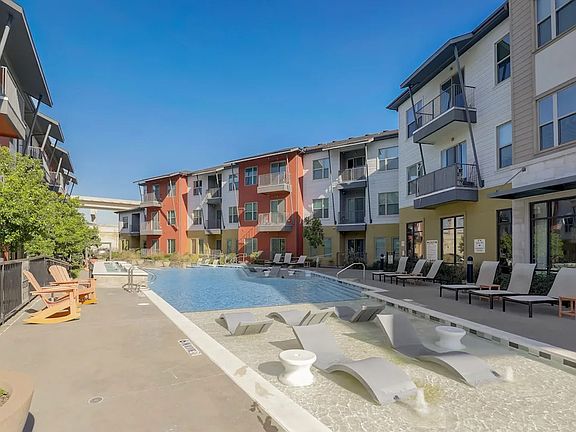 - Exterior features: Alarms, Attached Garages, Backlit Bathroom Mirrors, Flooring: Concrete, Package Receiving, Pet Park, Private Pedestrian Bridge to Dart Station, Renovated Interior, Sundeck, View Type: Creek & Poolside Views, Yoga/Zumba/Pilates
