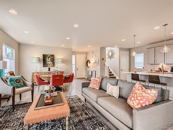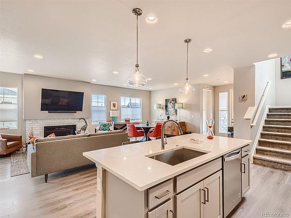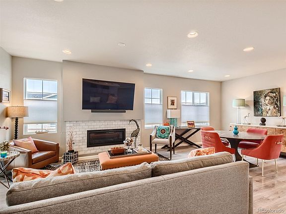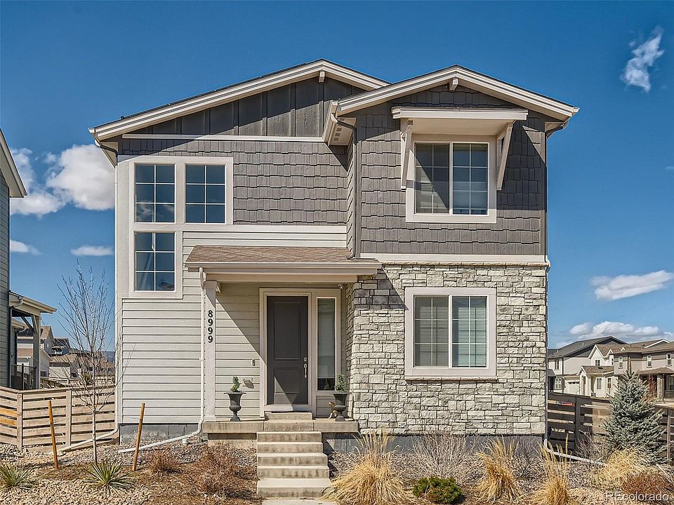 Tucked away on a treelined street located on a corner lot, this beautiful two story home is packed with as much character as it has charm. A magical secret haven nestled in Sterling Ranch, previous model home! Timeless design entirely move-in ready. Light, bright & open oozing charm at every corner. Clean and crisp with bold design elements, the details are punctuated with warm tones and thoughtfully upgraded lighting. Soaring ceilings with an abundance of natural light. Main level sets the perfect tone for entertaining, lounging, cooking, and dining (you know, all the best stuff). Gourmet kitchen w/stainless appliances & quartz countertops, open to living, dining & deck. Your morning coffee or evening glass of wine just got waaay better! Large, landscaped yard, perfect for the most energetic game of tag or fetch. Formal dining, main floor office & cozy fireplace round out the main level in style. Upper master fit for a king (literally)! Large walk-in closet, dual vanities, large tub, beautiful walk-in shower. Two additional, generously sized bedrooms up, all with large closets & full bath. Huge, unfinished basement. Peace of mind knowing utility costs are off set by the OWNED solar system installed in 2021. Includes all appliances, installed TV/sound bars and washer/dryer. Peace of mind property was pre-appraised prior to listing. All that is missing is you!