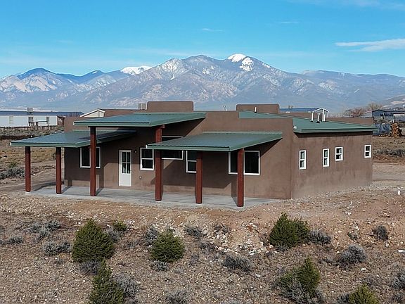 Experience the best of Taos living in this modern Southwest style home, perfectly positioned on a private cul-de-sac with breathtaking western exposure. Enjoy spectacular sunsets that paint the sky each evening and unobstructed views overlooking the golf course. This inviting three-bedroom, two-bath residence blends clean contemporary lines with warm regional character. Natural light fills the open living spaces, making it very cozy. A combination of privacy and scenery, make this home feel the tru spirit of New Mexico living.