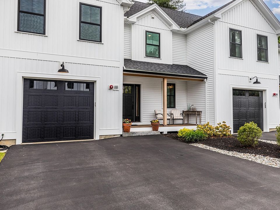 The Farmhouses at Founders Square is a beautiful townhome community located in idyllic Greenland NH. This home boasts over 2,000 sq. ft of living space, modern farmhouse charm, careful attention to detail, & a thoughtfully laid out floor plan. This middle unit includes 2 large bedrooms plus a large office, 2.5 bathrooms, open concept kitchen & living space, white oak hardwood flooring throughout, a single car garage, full basement, covered front porch, & a private back deck. Enter the home through the farmers porch which is lined with beautiful cedar columns and you'll find a lovely entryway with two coat closets and a half bath. Ahead is the open concept kitchen & dining area with views into the living room and backyard. The kitchen has a large island with pendant lighting, pantry, & a fully tiled backsplash. The living room is equipped with a gas fireplace. On the second floor is a guest bedroom, full bath, office/bonus room, designated laundry room, & large primary bedroom. The primary bedroom has two substantial closets and a beautifully tiled ensuite bathroom. Condo fees include landscaping & snow removal. Located in close proximity to downtown Portsmouth, shopping, restaurants, golf courses, beaches, and major routes for commuting. Don't miss the opportunity to live in the heart of the NH seacoast this summer! Delayed showings begin 6/6 by appointment.