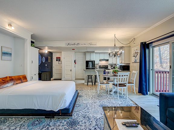 Welcome to Unit 8J at Attitash Mountain Village! This newly renovated studio has been transformed from top to bottom and is ready for its next adventure. This end unit features lots of natural light and comes fully furnished and turnkey ready. The renovations include a brand new gas fireplace, walk-in tiled shower, kitchen with new cabinets and countertops, and luxury vinyl flooring throughout. There is a washer and dryer, and storage locker for personal items and skis. Step outside to your private deck with bistro table seating, perfect for morning coffee or relaxing after hitting the slopes. Attitash Mountain Village offers an incredible array of amenities for you to enjoy. Summer features include indoor and outdoor pools, hot tubs, fitness center, tennis and basketball courts, playground, game room with arcade, and a trail network perfect for hiking and biking. Direct access to the Saco River beach area and dining at Matty B's Mountainside Cafe. Winter brings skiing at Attitash right to your doorstep with trail access across the street. The HOA fee is a great value with heating costs, water, sewer, hot water, high-speed internet, cable, and trash disposal all covered. These predictable monthly expenses means all you have to do is show up and enjoy your getaway. This unit is enrolled in the on-site rental management program with a strong rental history with proven income potential. Whether you're seeking a personal getaway, rental income, or both, Unit 8J delivers!