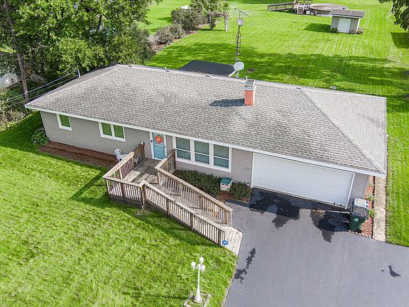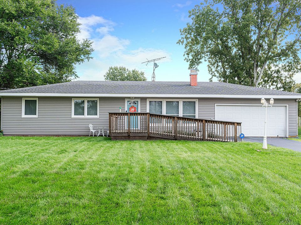 Welcome home to cozy comfort and serene beauty! This Ranch 3-bedroom, 1 bathroom gem situated on a generous .85-acre lot with tranquil blackberry creek gently flowing through your backyard. This property seamlessly blends modern updates with classic charm, offering a four-seasons room for relaxation, an oversized 2 car garage, outdoor shed, above ground pool, and a versatile partially finished basement. Kitchen boasts white cabinets with crown molding, updated hardware, spacious eat in area and the beautiful LVT flooring that runs mostly throughout the home. Living room includes fireplace and lots of natural light. Step outside to an outdoor paradise, perfect for gardening and entertaining in the above-ground pool, all while enjoying the soothing sounds of the creek. Nestled in a tranquil location, you're just a short drive from essential amenities and shopping centers, making this home the ideal combination of peaceful country living with nearby conveniences. Move in ready and mostly updated, this home invites you to start creating cherished memories from day one! New furnace in 2022, new roof on main home will be installed before closing. Lifetime warranty on windows. Home is not in flood plain, but back of lot is due to the creek. No additional insurance is required. Located in Kaneland school district.
