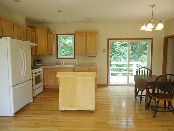 PENDING SALE, seller requests property remain as an active listing and that it continues to be shown. (Offer is subject to sale with a 72 hr clause.) Here it is! Nice 3 bedroom, 2 bath ranch on 5 wooded acres. Approximately 2 flat acres in front of house. All wood floors. Living room, kitchen and dining are open for that great room effect. Open walk-out basement ready to finish. 2x6 construction. Shared well agreement.