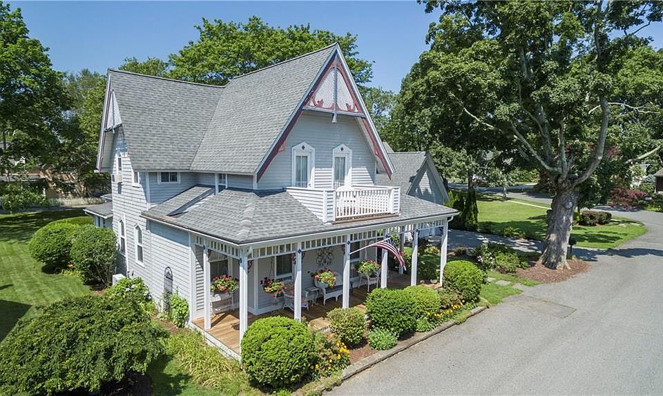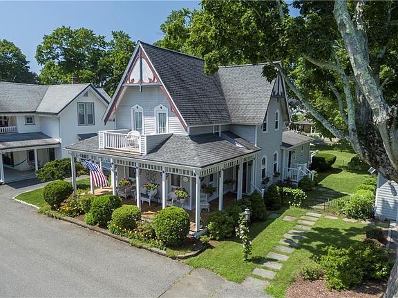 Take the Road less travelled, and celebrate life from the wrap around porch of this Victorian located in the center of the peninsula in Olde Buttonwoods. Water views of Greenwich Bay. Open flow interior with 9' ceilings on first level. Tall windows. Open flow interior. Flexible floor plan for multi generational living. First floor bedroom. Gourmet Kitchen with custom cabinetry and stone countertops. Cathedral ceiling family room with sliders to rear deck. Dramatic interior space with cathedral ceilings. Large breakfast area. Full baths on each level. Second floor has three bedrooms. East bedroom has doors to porch. This home is nestled on the site. Fenced yard. Detached oversized one car garage. Property is next store to Olde Buttonwoods Historic Chapel and two blocks from Casino and tennis courts, clay and composition. Additional amenities include beaches, walking paths, open space space, tot playground, ballfields and more. Step forward into Buttonwoods and discover the warm embrace of a life style you had assumed was long lost.