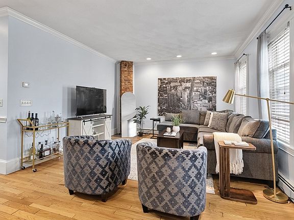 EASTSIDE TOP FLOOR TWO BEDROOM WITH PRIVATE ENTRANCE LOCATED ON QUIET DEAD END STREET IN THE HEART OF SOUTH BOSTON! THIS HOME GREETS YOU WITH A MASSIVE FRONT FACING LIVING ROOM CONTAINING A SKYLIGHT AND DESIGNATED DINING OR HOME OFFICE AREA. FULLY APPLIANCED EAT IN KITCHEN WITH STAINLESS STEEL APPLIANCES. KING AND QUEEN SIZED BEDROOMS. NEWLY INSTALLED FRENCH DOORS LEADING TO OVERSIZED DECK WITH TWO PERGOLAS, CREATING AN IDEAL SET UP FOR ENTERTAINING.RECENT UPDATES CONSIST OF A NEW WATER HEATER IN 2023, NEW RUBBER ROOF IN 2019, AND RE POINTING OF BRICK AND FRONT SIDING DONE WITHIN THE LAST 2-5 YEARS. ADDITIONAL FEATURES INCLUDE PORCELAIN TILE BATHROOM, DEEDED STORAGE, EXPOSED BRICK, HARDWOOD FLOORS, CROWN MOLDING, RECESSED LIGHTING THROUGHOUT AND NEW LAUNDRY. PREFERABLY LOCATED JUST ONE BLOCK TO ALL OF THE SHOPS, CAFES, RESTAURANTS AND BARS ON EAST BROADWAY.