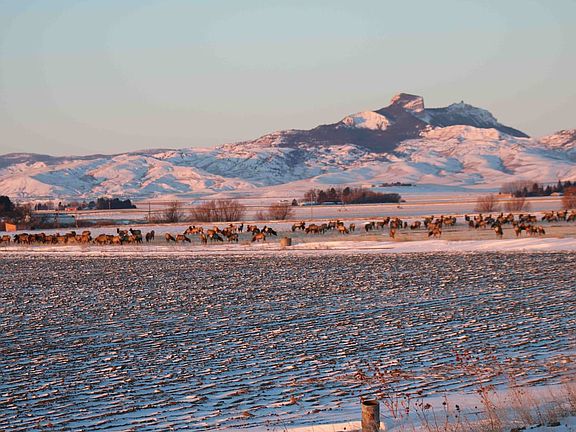 Spectacular 360 degree views. Heart Mountain location. Custom built 2300 sq ft single level home on 35 acres. Home features a spaciousopen living area with vaulted ceiling and unobstructed views of Heart Mountain. Kitchen with stainless appliances, breakfast bar and walk inpantry open to dining and living areas. Expansive deck off main living area. 3 spacious bedrooms. Guest bath with radiant floor heat. Mainbedroom with walk in closet and ensuite bath with dual sinks and walk in shower. Split bedroom floor plan. Laundry room/mud room off garagewith built ins. 9' ceilings and 2 x 6 interior walls. Oversized 2 car garage with storage area above. Home is conveniently located betweenCody and Powell and sits on 35 acres with 32 acres of irrigated ground. RV parking, landscaped and sprinkler system.