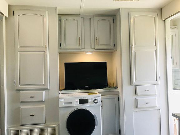 It’s park model travel trailer with a front anchor. It’s been fully remodeled… it’s beautiful. Heated floors in stand spots.
