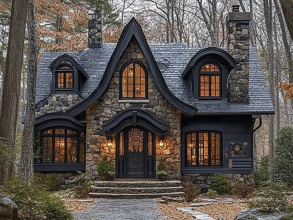 Step into a real-life fairytale with this stunning 3-bedroom storybook stone home, nestled on 10 peaceful, wooded acres. Designed with both charm and functionality in mind, this residence features soaring cathedral ceilings in the great room, an open-concept layout ideal for entertaining, and a warm, inviting flow from room to room. Enjoy seamless connection between the custom kitchen, elegant dining area, and expansive great room—all overlooking the scenic backyard porch. The main-level primary suite is a true retreat with double walk-in closets and a luxurious en-suite bath with soaking tub and separate shower. Additional highlights include a dedicated home office, utility room, multiple covered porches, and thoughtful craftsmanship throughout. Whether you’re seeking a weekend escape or a magical forever home, this one-of-a-kind property captures the essence of rustic elegance and timeless design.