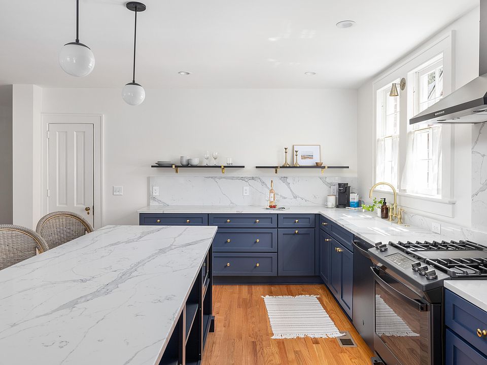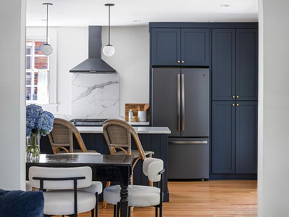 A second corner bedroom features a king size bed and closet. A third bedroom is outfitted with a queen bed, closet, second workspace, and custom bookshelves with slide-out writing desks. All bedrooms feature blackout curtains. The secondary bedrooms share a jewel box bathroom with a tub and shower. The new Electrolux washer/dryer is in a hall closet and is seriously the best washer/dryer I've ever used. The property was fully renovated in 2023 with high end finishes that are durable enough for kids. Hampton Park is just five blocks away and there is a dog park conveniently located just at the end of Grove St. This is a quiet, pet and kid friendly neighborhood that is extremely walkable and just minutes to the scenic downtown and all Charleston has to offer.