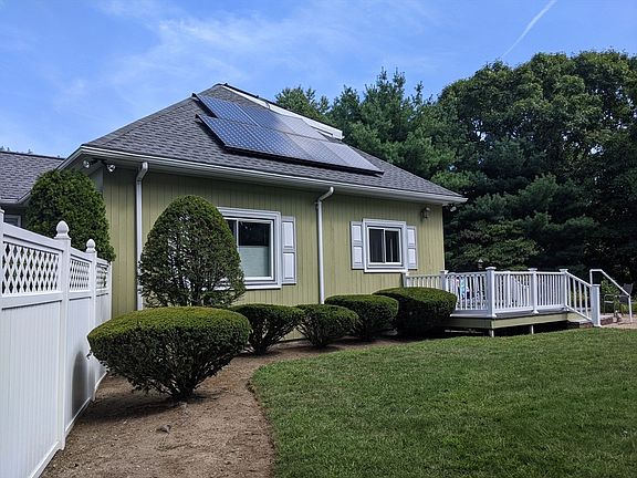 Located on a quiet cul-de-sac, this gorgeous contemporary home boasts a private backyard and a first floor master suite with walk-in closet and private bathroom. Enter the double-sided front door and into a warm and inviting foyer with a built-in bench and a large coat closet. The spacious and brightly lit living room is ideal for family gatherings. Next to the living room is the open-concept designer kitchen with granite counters and an island, dining area and family room. A private backyard with a deck and adjacent patio, a storage shed, and bordering conservation land awaits just outside the glass, sliding kitchen doors. On the first floor off the hallway is also a full bath with radiant heated floor and a hallway laundry. A set of stairs from the living room leads to the second floor, with dramatic sunset views through the diamond window above the foyer. Two bedrooms and a full bath on the second floor complete this beautiful home. Close to Wright's Pond and Fells Reservation