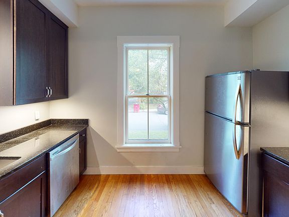 Here you will find one of the most beautiful rentals in the Upper Valley. Enter through the front or side of the house and immediately find a spacious dining and living room with tall ceilings featured with large double hung windows, detailed woodwork, and hardwood floors. On the 1st floor you will also find a half bathroom as well as a large kitchen equipped with a stainless steel dishwasher, large fridge, over-the-range-microwave, electric range, and granite counter tops.