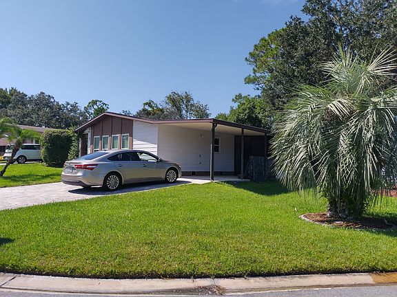 This beautifully renovated 2/2, 1456 SqFt Manufactured Home is furnished and offers comfort, style, and unbeatable convenience. House located in a very popular "The Falls at Ormond Beach" Resort style Community 55+ To qualify for renting this home, at least one family member has to be 45+ This dream home is remodeled with regular insulated drywalls, 12mm water resistant stylish laminate flooring in the main area, real wood doors with matching baseboards, windows, porcelain tiles in both completely remodeled bathrooms. New water heater in November 2023. New air conditioner in 2025. Brand new stove/oven. Home located on cul-de-sac near entrance of the community. This house is very bright, roomy and very warm with nice large privacy behind it. Enjoy a specious open layout, generous bedrooms, plenty of natural light, with serene private backyard. Ensuite Master Bathroom has walk in shower. Both bedrooms have a newer carpet. For your convenience, there are Landry Room, Spacious Screened Florida Room with Storage, Carport with newly installed brick paver on oversized driveway. "The Falls "community has a CLUB HOUSE with friendly management, warm atmosphere and many activities and special events. You can find Recreational Room, Library, Gym, Pool Tables, Game Room. Outside you can enjoy heated Swimming Pool, Jacuzzi, Grills, Tennis Courts, Mini Golf Court, Walking Trails, RV and Boat Storage are on site. Community is located close to shopping, dining, major highways, and short drive from the beautiful beaches. Showing is available by request. Rent to own is available. Please, call/text Lana Tenants pay all the utilities fee to the city and TV + Internet to landlord.