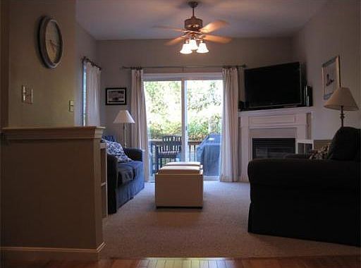 Pristine townhouse w/open floor plan and 9' ceilings on the 1st floor. Pottery Barn style w/two story foyer and modern day charm. Kitchen w/white upgraded cabinets & hardwood floors. Family room w/gas fireplace, paddle fan and slider out to deck. Dining room open to family room w/hardwood floors. Master bedroom w/cathedral ceilings, ceiling fan, ample walk-in closet space, and master bath. Second bedroom w/ceiling fan and ample walk-in closet space. Laundry on 2nd floor. Central air, 1 car attached garage. Backs up to wooded area for privacy. All ages unit.
