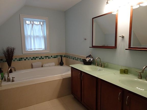 Built in 2009, this spacious four bedroom apartment on the second and third floors of a two-family home in a nice residential neighborhood is available February 1, 2019. There is an open plan living/dining area with a fireplace. The kitchen features generous cabinets, stainless steel appliances and granite counters and has a five burner gas stove. Brazilian cherry floors and central air conditioning throughout. There are two bedrooms on the second floor along with a full bath and laundry. The third floor features a master bedroom with en suite spa bath and walk-in closet, another bedroom and a family room. Outside space consists of a porch and shared small yard. There is one off-street parking space. A cat is OK. No smokers, please. Not your average Malden rental!