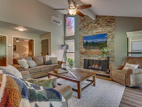 CHOOSE GORGEOUS! CHOOSE EASY LIFE! CHOOSE INCOME & VALUE...CHOOSE THIS... 9 ASPEN CIRCLE in PLUMAS PINES, located along the 8th FAIRWAY at PLUMAS PINES GOLF COURSE! Expansive Views, wildlife and mountain vistas await! This particular Villa has been REFRESHED and UPDATED with many outstanding features. To name a few: FOUR Mini-Splits: 2 down and 2 up that provide all season heating and cooling; New beautiful Ledge Stone on the fireplace; newer windows and window coverings; newer luxury vinyl flooring, Cozy up to the charming "Coffee Bar"...and more. This spacious 4 bedroom 3 bath Villa is offered mostly FURNISHED, TURN KEY and comes with an outstanding rating on VRBO! Great income producing property AND all this fun too? How about the added bonus in the garage with the ping pong and shuffleboard - perfect for ALL Ages (shuffleboard might not remain). The large utility room shares lots of storage space, a new washer/dryer too. All this and just minutes away from world class golf, pickle ball and tennis, Mtn. Bike mecca, hiking, fishing....just to name a few! Enjoy Downtown Graeagle with boutique shopping and restaurants and bars.... don't wait, this is very special!