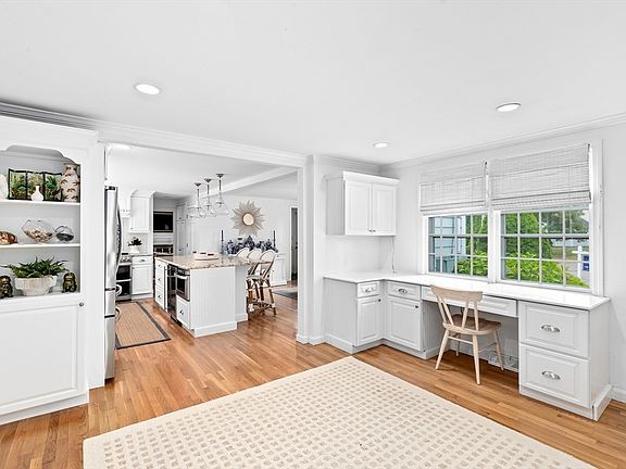 WOW! This is NOT your typical 1950's colonial. Lots of updates/renovations in the last several years that have transformed this home to what today's buyers are looking for. There's an OPEN Kitchen/Dining room w/large island and bay window overlooking the back yard. The Mudroom is amazing and provides a large landing zone before entering the main living spaces. The cathedral Family room w/shiplap walls/ceilings and beautiful fireplace is perfect for entertaining. Cozy living room w/fireplace is tucked away making a great WFH space. Bonus room off the family room w/full bath could be a great guest suite or another beautiful WFH space (as current owners use).Upstairs there are 3 bedrooms w/HW floors, including a pretty primary suite w/fabulous walk- in closet and marble bath. The Lower level is currently unfinished, but offers ample room for a gym/play room. Spacious deck and patio w/hot tub overlooking the large, level FENCED-IN back lawn. On a cul-de-sac in a great central location!