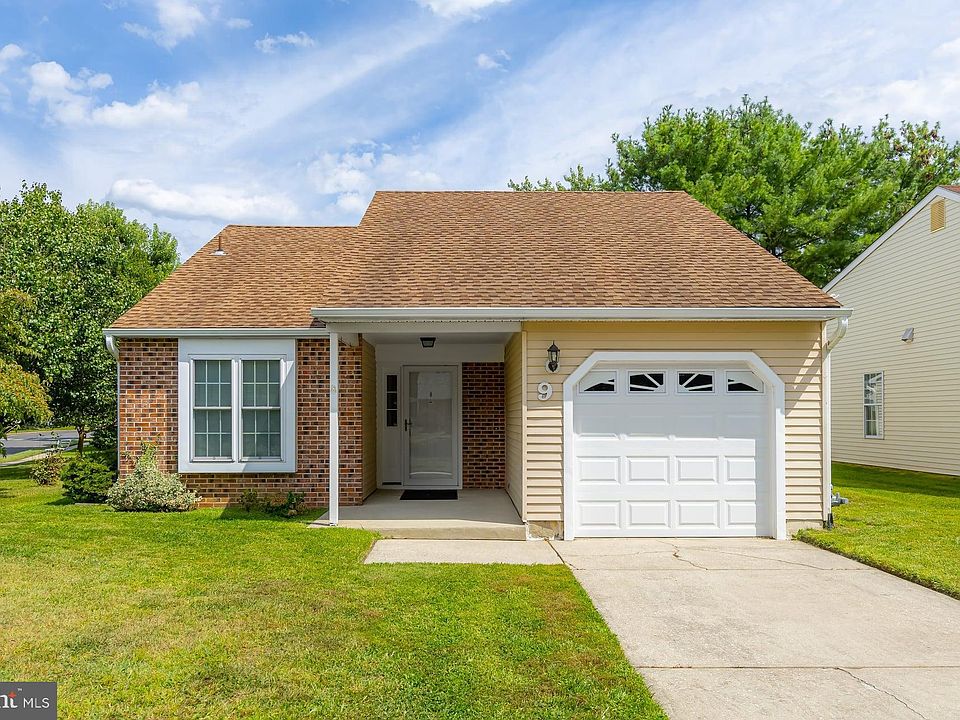 Welcome to 9 Avandale Court! This wonderful, brick front Madison model sits on a corner lot at the very top of a small, quiet cul-de-sac. The charming facade and covered front porch lead you into a light & bright interior space. The eat-in kitchen is located off the foyer and offers wood cabinets, recessed lighting, plenty of storage and food prep space, plus a large window for views & natural light. Neutral tones and light carpeting in the open living & dining rooms make it a blank slate and easy for decorating The primary bedroom is extremely spacious, and features a walk-in closet, and a primary bath with a walk-in shower and a separate make-up bar or storage area. The second bedroom is also a good size. The main hall bath has a single vanity /shower/ tub combination and has been well maintained. A laundry room sits between the two bedrooms which is nice and convenient. A wonderful feature of the Madison model is the 4-season sunroom complete with 3 sliding glass doors that open to a nice yard. This space can be used in a variety of ways such as a family room, den, exercise room, etc. A one car garage also comes with additional storage space if needed. Holiday Village is an exceptionally active adult community where you can enjoy easy living & all the advantages of the association - no more lawn mowing, raking leaves and shoveling snow! There are tons of social activities, a club house, exercise room, billiard room, library, tennis courts, putting green, lakes for fishing, and even a heated saltwater in ground pool! Here you will love the close proximity to shops, restaurants, parks, plus easy access to Route 295, 73, 70, NJ Turnpike, shore points and Philly. The HVAC system & electrical panel have all been updated. Don't wait to call this one "Home".