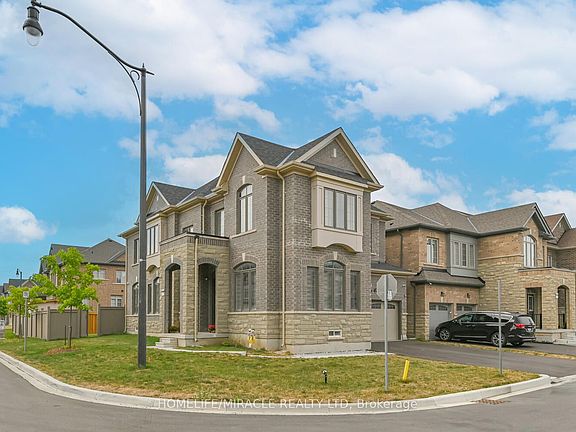 Welcome to 9 Bavenden Cres a newly built, 3,100 sq. ft. luxury home in one of Brampton's most desirable neighborhoods. This stunning 5-bedroom, 4 Full-washroom detached home a premium corner lot, with over $100K in high-end upgrades. The premium stone elevation sets the tone for what's inside. Step through the double-door grand entrance and you'll be greeted by an open-concept layout, 10-ft ceilings on first floor and 9 ft ceiling second floor, large windows for abundant natural light, and top-quality finishes .Luxury features include: Upgraded hardwood flooring on the main floor & upper hallway Granite ceramic tiles in the kitchen Oak staircase Frameless glass shower in the primary ensuite. Granite countertops in all washrooms Kitchen island with granite top & rough-in gas line. Electric fireplace & garage door opener. Perfectly located within walking distance to plazas, public transit, high-rated schools, and parks, with easy access to major highways. This home offers the perfect blend of luxury, comfort, and privacy. A must-see in a prime location. Priced to Sell! 10ft ceiling first floor and 9 ft ceiling second floor .