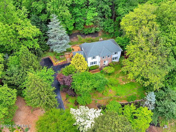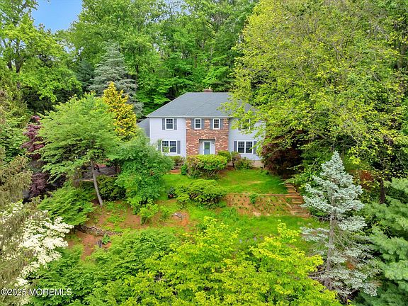 Privacy Abounds! Set high on a hill & surrounded by nature, this Center Hall Colonial offers exceptional privacy & endless potential. Located in a desirable cul-de-sac, this property features low maintenance grounds, sweeping views, perfect for those seeking a peaceful retreat. This home boasts a classic & functional layout including an inviting Living Room with wood-burning fireplace & glass doors to a private paver patio. The Formal Dining Room flows into the Eat-In Kitchen which connects to an airy Sunroom with access to the expansive outdoor deck, ideal for entertaining. The spacious Family Room offers a 2nd wood-burning fireplace & additional gathering space, while a private main floor Office/ 5th Bedroom provides flexibility with today's lifestyle. The 2nd floor features Primary Bedroom with walk-in closet & en-suite Primary Bath. 3 additional bedrooms with full shared hall bath complete the upstairs. A partially finished basement offers half- bathroom & direct access to the attached 2 car garage. Truly a one-of-a kind property, move in & make it your own! Added bonus is the buyers one year HSA home warranty is included! Conveniently located near NYC transportation, PNC Arts Center, MSK, GSP, local Rt. 35 shopping, restaurants, beautiful parks & Jersey Shore beaches.