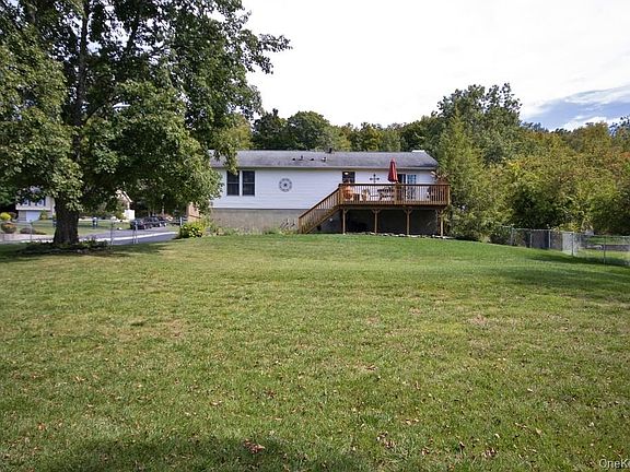 Welcome to Robin Meadows, located in the highly sought-after Minisink Valley School District! This beautifully maintained raised ranch is truly turn-key and ready for its new owners. Featuring four bedrooms and three full bathrooms, this home offers both comfort and functionality. Inside, you’ll find oak hardwood floors on the upper level—no carpets—and freshly painted walls that create a warm, inviting atmosphere. The first floor includes a spacious living room, dining area, kitchen, three bedrooms, and two full bathrooms. From the dining room, glass sliding doors lead to a brand-new deck overlooking the flat, fenced-in yard with storage shed—perfect for entertaining, relaxing, or simply enjoying the view. The lower level provides additional living space with one bedroom, one full bathroom, a laundry room with washer and dryer, and convenient access to the two-car garage. Major updates include a brand-new central air system installed in 2025, a new boiler in 2022, a back deck replaced in 2022, and a driveway that has been freshly sealed. Step outside to enjoy the private, level yard, ideal for gatherings, play, or pets. With very low taxes and access to award-winning Minisink Valley schools, this home checks all the boxes for modern living. Great commuter, location and low taxes!