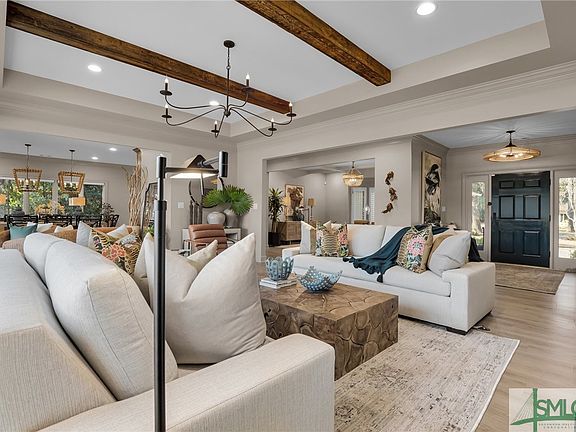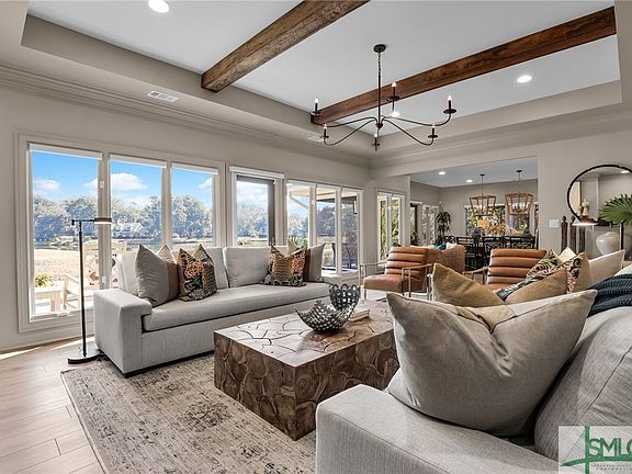 Step into a masterpiece of design and craftsmanship—one of the most exquisitely remodeled homes in The Landings. AVAILABLE FULLY FURNISHED. No expense was spared in the complete reimagination of this stunning residence, where every inch has been meticulously redesigned. The expansive first floor boasts three beautifully appointed bedrooms, each featuring brand-new en-suite bathrooms. A private fourth bedroom suite over the garage offers a perfect retreat for guests. The living room is a showstopper, with a newly stuccoed fireplace and elegant ceiling beams. Enjoy views of Palmetto #2 Golf Course and Midpoint neighborhood. Step outside to a back porch with open-air and covered seating, complete with automated screens. The kitchen has been completely reconfigured with custom cabinetry and top-of-the-line commercial appliances. This is a rare opportunity to own a truly turn-key luxury home in The Landings. Offered furnished or unfurnished, this residence is ready for immediate enjoyment.