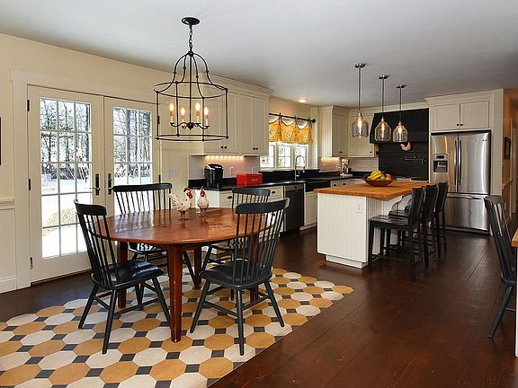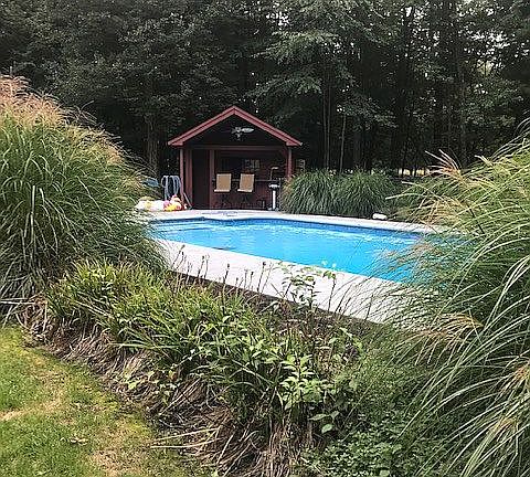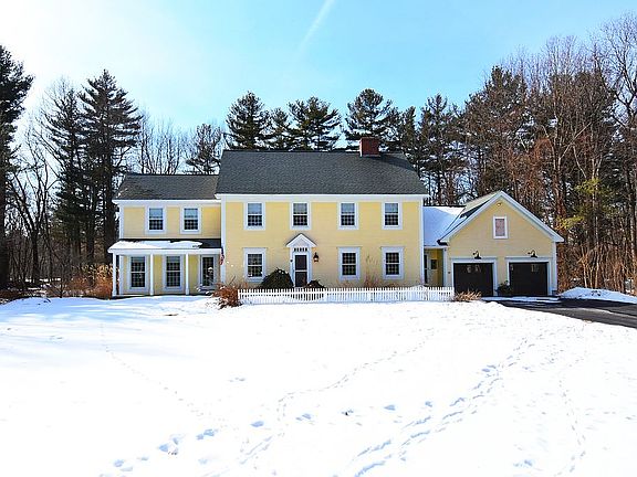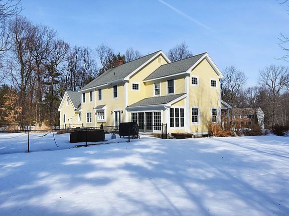 Situated on 1.2 acres near the end of a beautiful cul-de-sac, this 3000 square-foot reproduction farmhouse-style home boasts four plus-sized bedrooms and 2 ½ baths. Central air conditioning and forced hot water heating keep you cool in the summer and warm in the winter. This one-owner property is well maintained and updated. Wide pine floors throughout the living areas with radiant floor heat in the bathrooms keep your feet warm and toasty on cold days. Enter the home from the two-car garage or side door into a tiled mudroom area. The ½ bath/Laundry room is adjacent to the entryway allowing kids to come in and out quickly as they play in this child-filled neighborhood. As you walk from the mudroom, a home office is located adjacent to the 1/2 bath and kitchen. The home features a gourmet eat-in kitchen and is a home chef’s dream with a butcher block island, soapstone countertops, and a six-burner gas stove with indoor grill. A large dining room and spacious family room lie just off the kitchen. The first floor also has a second den/office with a brick fireplace and built-in bookshelves, making it possible for two people to have their own office space. The second floor has two full baths and four bedrooms. The primary bedroom has a large renovated bath with a shower and separate jetted tub. A walk-in closet and a bonus clothes closet complete the master suite. The three other bedrooms are oversized and can easily accommodate queen/king beds. The additional full bath on the second floor is also recently remodeled and has a dual sink vanity and a tub with a shower. As for outdoor space, a three-season porch leads to the backyard oasis, complete with an inground pool, pool house, shed, and 90 by 30-foot sports court that doubled as an ice rink during winter months. Finally, the basement is partially finished and is pre-plumbed to allow for an additional bathroom to be finished. As a bonus, a day care/pre-school is located across the street to the entrance to the neighborhood and is a two-minute walk.