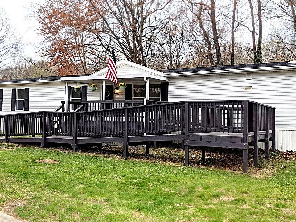 Welcome home to 9 Boones Dr! This 3BD 2 Ba boast a whopping 1792 SQ feet of open concept living with tall cathedral ceilings. This is one of the largest models in the neighborhood. Private lot with direct waterfront views of pond with a big beautiful fountain water feature from both the dining area, master bedroom and your front porch. Completely redone, house is in near perfect condition. Roof and both decks only two years old, brand new flooring throughout. Brand New water heater and high end washer and dryer. This house is equipped with a handicap ramp and two new very large decks, front and back. Gourmet kitchen with upgraded stainless steel appliances and an oversized eat in island that can seat many. Master suite includes huge bathroom, with tile two person sunken tub and double vanity. There is no other home with quite this luxury floor plan in this price range, not to mention water front. Make your appointment today, will go fast! This home does not go traditional financing and must be financed through a mobile home lender. Please message agent for details. Buyer must also be approved by neighborhood management. Lot rent is $995 a month and includes water, sewer, and trash service. Amenities such as huge neighborhood pool, tennis courts and playgrounds are what makes Boones Estates the most sought after in the area