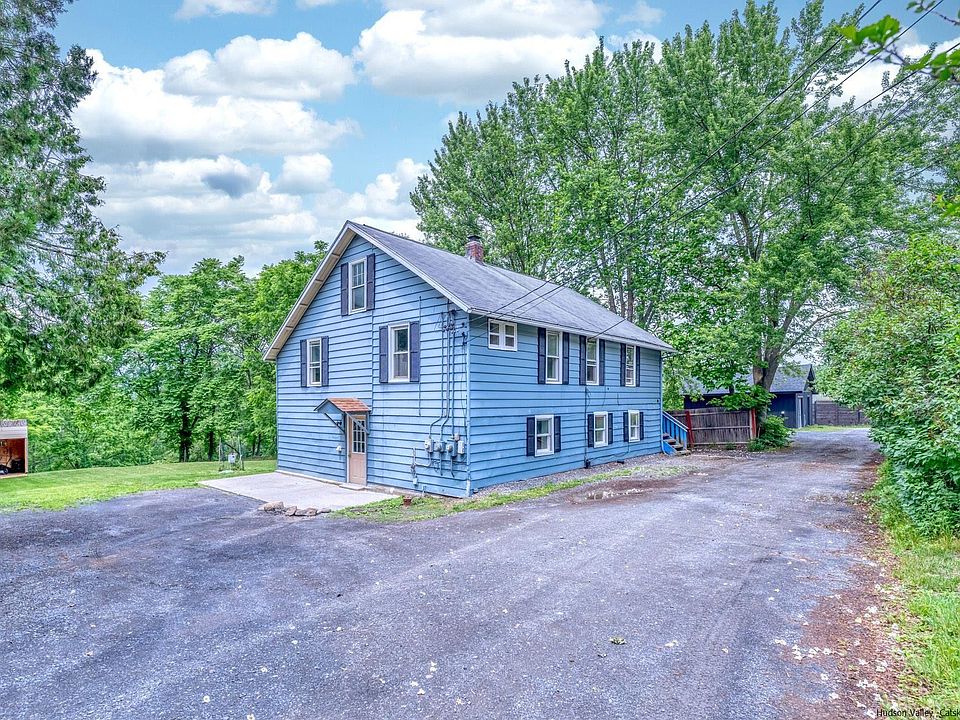 Just outside the village of Saugerties in the town is this 2 family on a half an acre that offers mountain views and over looks HITS. The downstairs unit has 2 bedrooms with 1 full bath with an open floor concept. The upstairs unit has 3 bedrooms with 1 bathroom. Both units offer over 1000 square feet of living space and off street parking. The windows were replaced approximately 10 years ago, roof was put on approximately 2008. All the rooms are decent in size and plenty of closet space. The tenants pay for their electric and garbage removal. This property is vacant so this will lend itself for the opportunity for an owner occupied situation where you live in one unit and collect rent from the other, or start out fresh... you make all the decisions such as how much rent to charge etc. Opportunity is knocking.