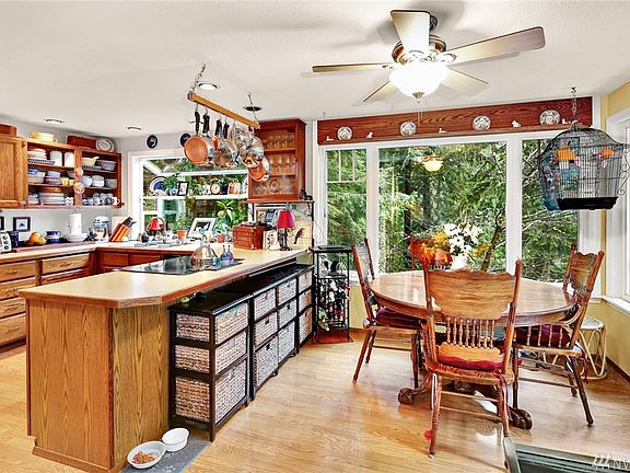 Charming 3BR, 2BA home sits on double lot w/park like setting. Private yet bright & open, each room has great natural light w/beautiful views of the surrounding nature. The large kitchen flows naturally into the dining room & entertaining deck. The living room features beautiful built in cabinets & shelves plus a gas stove. Hidden gems include a bonus room w/separate access downstairs, perfect for an office or MIL apartment plus a huge walk-in storage area. This home is a must see to appreciate!