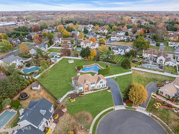 Welcome to this elegant 5 BR, 3 Bath Colonial, perfectly situated on a private, spacious cul-de-sac lot just over 1/2 acre. Recent upgrades include a stunning center island Kitchen w/ custom cabinetry & granite countertops, complemented by Family Room H/W floors. The 2 story marble Foyer welcomes you into a well designed floor plan featuring a 1st floor BR and full Bath, a refined Study w/ pocket doors & a grand 1,000 SF. Primary Suite with large walk-in closet, a Sitting Room & tray ceilings. Outdoors, enjoy a resort-like oasis perfect for entertaining, w/ a free-form automated heated pool, spa, lights, waterfall w/ an expanded stamped concrete patio. Additional features include a large Belgium block driveway & a side-entry garage. A truly extraordinary home offering elegance & comfort in a premier location on one of the best lots in the neighborhood!