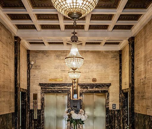 Historic lobbyBeautiful finishesOriginal terrazzo flooringOriginal travertine and marble