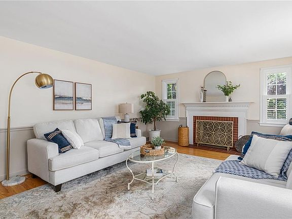 Welcome to this expanded cape nestled in a lovely Hampden Meadows neighborhood just a short walk to the Barrington River. The home has been beautifully updated and meticulously maintained with hardwood floors throughout. The spacious living room welcomes you with its wood burning fireplace and provides ample room to spread out. The updated kitchen has quartz countertops, stainless steel appliances, a butcher block island and is open to the large dining room that would be perfect for holiday dinners. Completing the first floor is a primary bedroom and a tastefully updated bathroom. Step upstairs and you will find three additional bedrooms and a full updated bathroom. The basement is partially finished with an additional family room space, office and finished laundry room. The unfinished space would make a great home gym area or can be easily finished. The park-like backyard boasts an extensive patio space for al fresco dining and allows you to host the most perfect gatherings. A double car garage plus an additional shed provides plenty of storage. The home has central air conditioning, upgraded 200 amp electric, gas heat, leased solar panels, fenced yard and provides all the amenities to make this home comfortable and stylish. This move in ready home is waiting for you to enjoy. Call for your private showing today.