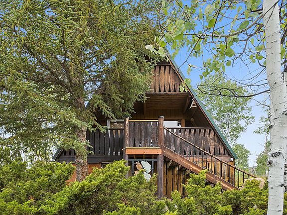 Discover this charming 798-square-foot A-Frame retreat, perfectly positioned on a knoll of aspens just steps from the East Gate of Pine Mountain. This secluded 2-bedroom, 1-bathroom cabin offers stunning views and ample parking in the sought-after Pine Mountain cabin community just East of Oakley in the Weber Canyon. The main floor welcomes you with a primary suite, full bathroom, and an open living area featuring massive windows that flood the space with natural light. The well-appointed kitchen completes this level, creating an ideal gathering space for family and friends. Upstairs, the enclosed loft provides cozy sleeping quarters for all the grandkids, complete with its own private deck that complements the expansive first-floor deck-perfect for taking in those mountain views. Pine Mountain's seasonally accessible community offers the best of mountain living with direct access to national forest lands, paved roads, and the unique amenity of a shared horse pasture that adds to the area's rustic charm. Square footage figures are provided as a courtesy estimate only. Buyer is advised to obtain an independent measurement.