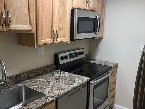 This apartment is kept in very good condition. Located on a quiet secluded downtown street close to restaurants and activities. All appliances are stainless steel with LVP flooring and ceramic tile throughout. The building is a quiet setting and we are looking to keep it quiet for all who live there. Plowing, lawn care, garbage service and sewer & water are all included. Laundry is located in the main hall of the building. All window coverings are included.