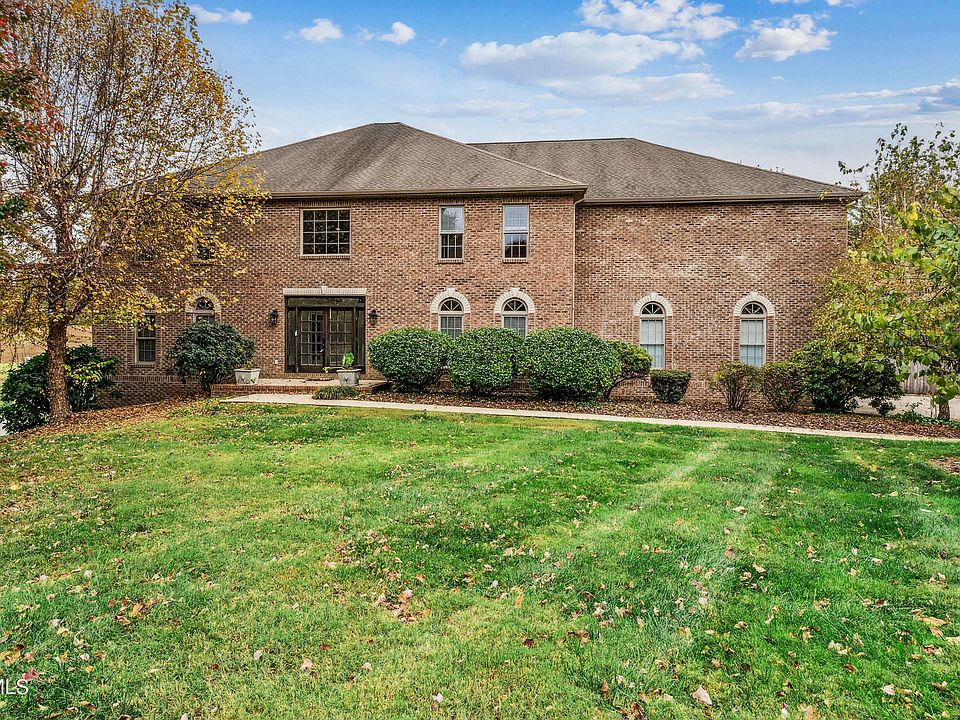 This stunning custom-built estate in highly desired Sterling Springs offers over 5,000 sq. ft. of finished living space and is perfectly situated at the end of a quiet cul-de-sac. With five spacious bedrooms, this impressive home provides plenty of room to grow, entertain, or simply enjoy the luxury of space and privacy. A pair of elegant French doors open to a grand foyer featuring a beautiful staircase with wrought iron railing. The main level offers a formal dining room and an open floor plan designed for effortless flow between the great room and kitchen. The great room showcases a gas log fireplace, cathedral ceiling, and two-story windows that flood the space with natural light. Step out from the great room onto a terrace that spans the length of the home, offering breathtaking views of the surrounding countryside and mountains. The eat-in kitchen features stainless steel appliances, granite countertops, an abundance of cabinetry, a center island, and a pantry for extra storage. The main-level primary suite offers a luxurious private bath complete with a dual vanity, jetted garden tub, tiled shower, and an expansive walk-in closet. The laundry room is conveniently located on the main level along with a half bath and access to the 3-car garage. Upstairs, a balcony walkway overlooks the foyer from one side and the great room from the other. This level includes four oversized bedrooms, two full baths, and an impressive 800± sq. ft. flex room—ideal for a playroom, home office, gym, or even a sixth bedroom. The basement provides additional possibilities with a drive-under garage, car wash bay, and plumbing for an additional bath. It could easily be finished out to provide additional living space. It walks out onto a covered patio—perfect for relaxing or entertaining outdoors. Additional highlights include hardwood flooring throughout, Anderson windows, three heat pumps, granite countertops in the kitchen and baths, and a gas water heater. Conveniently located near I-26, shopping, dining, the VA, ETSU, schools, and medical facilities.