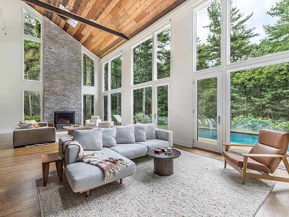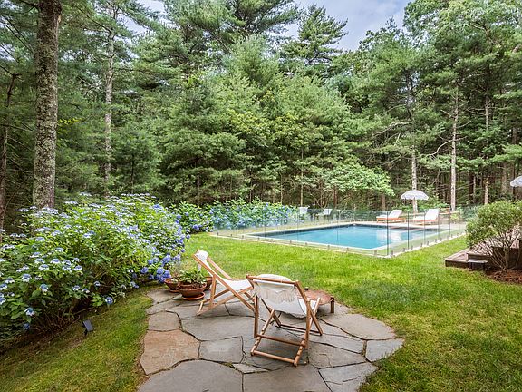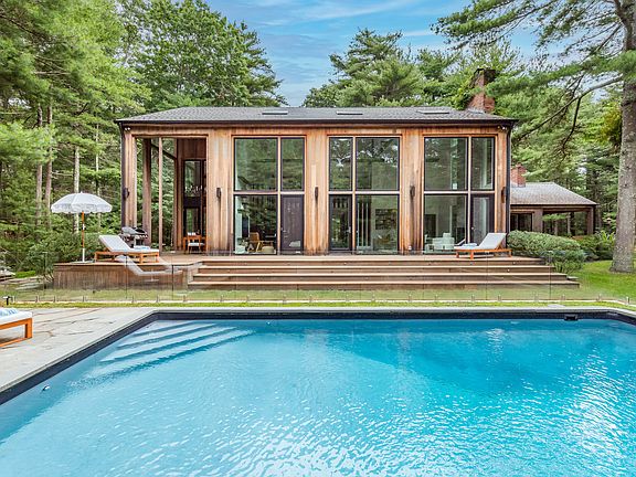 Rental Registration #: 21-1,137 Make yourself at home on a private 2 acre oasis in the Northwest Woods! Surrounded by white pines and a 63 acre nature preserve, this gorgeous modern is available for the perfect Hamptons getaway. When you drive down the private road and enter through the gate, this 4 bedroom gem you are immediately drawn to the immaculate architectural details that this house holds. With oversized windows throughout, sun seeps through consistently no matter your location in the house. The first floor boasts a spacious eat-in kitchen fully equipped with a Wolf stove, Subzero refrigerator, double dishwashers, wine storage and state of the art cabinetry. The large, light-filled great room features 25' ceilings, a wood burning fireplace and windows overlooking the heated pool, fire pit, patio and covered porch that includes a propane grill. The first floor master bedroom suite rounds out the first floor which also has its own gas fireplace, walk-in closet, and a flawless bathroom with a free-standing tub, shower and double sinks as well as a large covered porch. As you walk up to the second floor, you have an open hallway that leads to three more well-sized bedrooms as well as a private office with a pull out couch. On the lower level you will find a bonus room, a full bathroom, a laundry room and a game room/gym. Outside you have a large covered dining area off the kitchen, a private pool as well as a hot tub, a cozy fire pit area, an outdoor kitchen and a quick walk to the nearby hiking trails. There is no better stay in the Hamptons than right here at 9 Cattle Walk.
