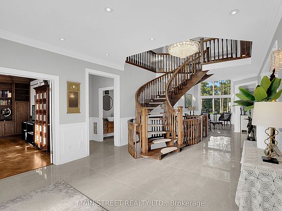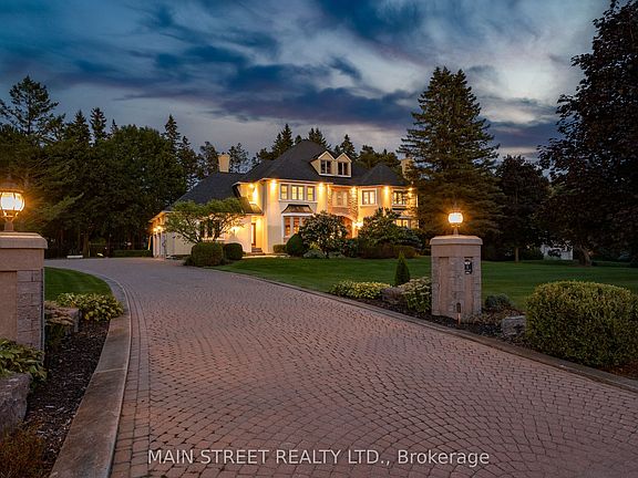 Tucked away on a lush, one-acre private lot, this extraordinary custom-built residence offers approx. 8,000 square feet of impeccably finished living space, where timeless sophistication meets effortless functionality. Surrounded by mature trees and backing onto a serene ravine, this estate promises a lifestyle of unparalleled tranquility and prestige. From the moment you step inside, the grandeur of the home reveals itself through soaring ceilings, sun-drenched skylights, and exquisite architectural detailing, including crown moulding, wainscoting, and custom California shutters. Each space flows seamlessly into the next, offering an ideal setting for both lavish entertaining and intimate family gatherings. The heart of the home extends outdoors to a sprawling, oversized deck, perfectly positioned to overlook manicured gardens inspired by Zen serenity. A rare and whimsical touch, the private bocce ball court adds a sense of playfulness to the sophisticated grounds making the backyard a true retreat with room for a pool. Every bedroom is its own sanctuary, complete with private ensuite bathrooms that provide comfort, privacy, and luxurious convenience. The professionally finished lower level is a destination unto itself, featuring a stylish double bar, a separate nanny, guest suite or library, and expansive spaces designed for entertaining on a grand scale. A spacious three-car garage adds both form and function, while the home's location is just moments from Highway 404, GO Transit, shopping and all amenities. Ensures the perfect balance of seclusion and accessibility. Newer Roof 2020, Stone Patio 2020, New Sump Pump 2022, New Well Pump 2021, New Hot Tub 2021, New Trex Composite Deck 2021, New Gazebo, Landscaping and Bocce Ball Court 2023