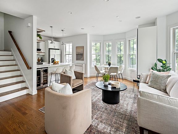 Discover modern urban living in 9 Cedar St, Unit 1 in Boston’s Fort Hill. This contemporary 3+ bed, 2 bath townhouse offers 1,693 SF of elegant design on 4 levels with hardwood floors and recessed lighting throughout. Oversized bay windows fill the living/dining area with light, while built-in speakers set the mood. The kitchen boasts stainless steel appliances, breakfast bar with beverage fridge, and elegant Shaker cabinets. Upstairs are 2 spacious bedrooms and a full bath with a stained glass window. The top level hosts the primary suite with a walk-in closet, en-suite bath with radiant-heated floors, and direct access to the private roof deck. Enjoy a plus room on the ground level, in-unit laundry, front patio, Cedar Square park, and off-street parking. Pet-friendly and commuter-friendly with access to the Jackson Sq T and Washington St bus. Close to Thornton Urban Farm & Gardens. A smart, stylish home for today’s discerning Buyer. This is a condominium. See Firm Remark for details.
