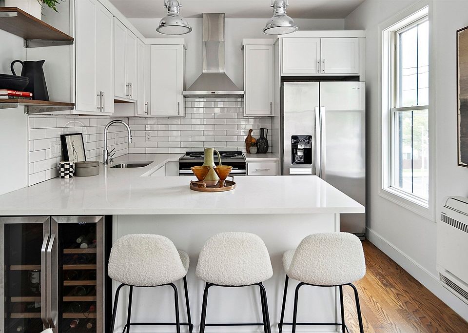 In-unit laundryFront patioBreakfast barHardwood floorsPrivate roof deckRecessed lightingStainless steel appliances