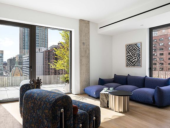 Floor-to-ceiling windows frame sweeping views of Brooklyn just beyond your private, wraparound, landscaped terrace, overlooking the golden dome of the Cathedral Basilica of St. James. The great room balances open-concept living with intimacy—soaring ceilings and warm oak floors create a backdrop for daily rituals, whether reading in the morning sun, lingering over long dinners, or unwinding in quiet conversation as the day fades. Off the great room is an additional space ideal for a home office, media room, or fourth bedroom that can easily be enclosed, if desired.