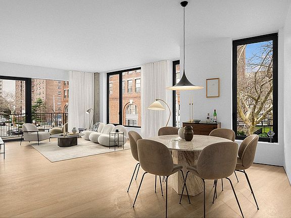 Residence 9A is a 1,564 sf corner three bedroom, two bath home offering north, south and west exposures, a private entry landing, and two covered loggias. The loggias are framed bya beautiful perforated screen, which allows light to filter in but provides added privacy and weather protection making it a true extension of the interior.The expansive great room allows for a large dining table, and generous living room with a wall of glass overlooking the neighboring Cathedral, and access to the south-facing loggia. The massive kitchen features two exposures, a gorgeous organically shaped island functioning as an additional gathering space, and access out to the north/west loggia for outdoor dining. The primary bedroom offers a full wall of closets, and a stunning en-suite bathroom with dual sinks and glass-tiled walk-in shower. Bedroom two has corner exposures, and bedroom three has direct loggia access. The hall bath features dual sinks and a white glass mosaic tub/shower.