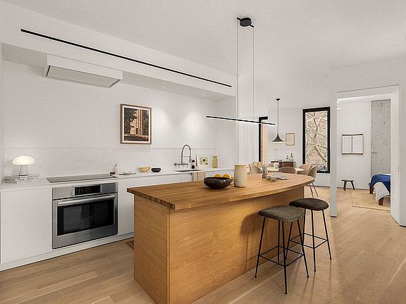 Amenities at Nine Chapel include a multi-purpose lounge with curated furnishings by renowned designer GUBI -- perfect for co-working or gathering with friends and neighbors. A windowed fitness studio offers state of the art equipment. Bike storage is conveniently located at the lobby level, and residents can ride directly to the entrance. A virtual doorman system by ButterflyMX ensures ease of entry for guests and package delivery.