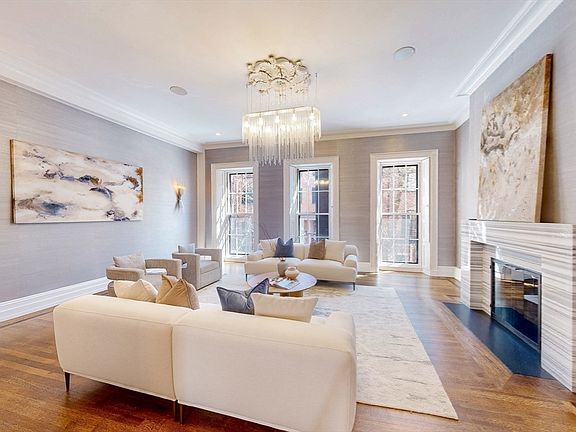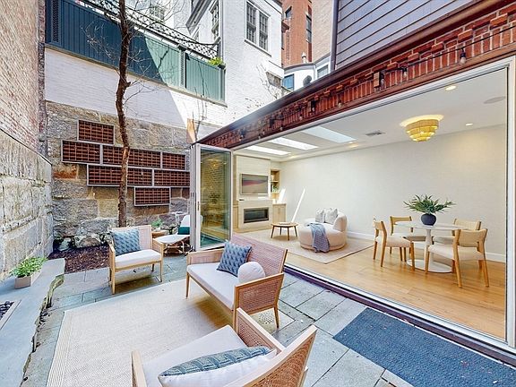 Beautifully restored single family townhouse located on coveted Chestnut Street steps to the Common. The first floor boasts a custom kitchen with top-of-the-line appliances throughout, large center Island, pantry; spacious front facing dining room overlooking Chestnut Street with a gas fireplace; and a phenomenal year-round sunroom with adjoining stone courtyard accented with both indoor and outdoor gas fireplaces, a vertical garden and a glass wall that fully retracts. The property's second floor wide open entertaining level comes complete with south facing floor to ceiling windows, exceptional ceiling height, two marble gas fireplaces, and wet bar. The third level master bedroom has huge custom walk-in closet and bath with high end finishes, rear guest bedroom/office and full bath. The next level has two bedrooms, two bathrooms, second wet bar and laundry room. The exceptional sun filled media room offers flexibility in its use. The lower level has home gym, wine cellar and storage
