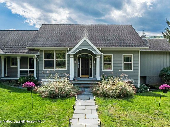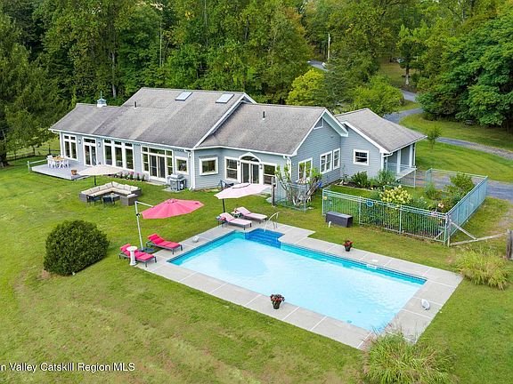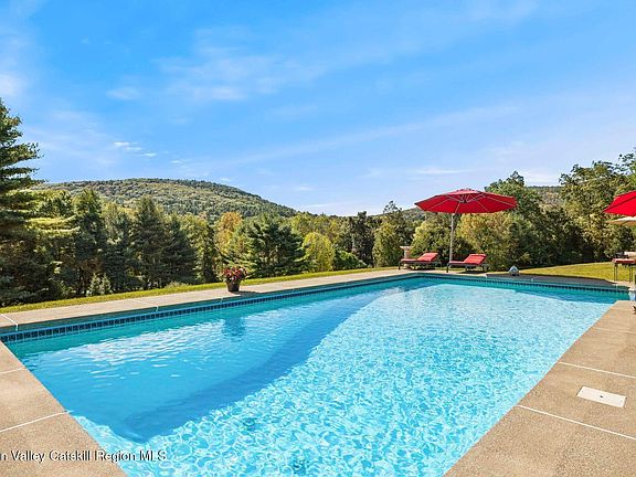 The grounds are a mix of level lawn, gently sloping meadows leading the eye toward the mountain, with woods surrounding the property lines for privacy, A wonderful in-ground pool area is just steps from the house and adjacent to the fenced in vegetable and perennial flower garden.