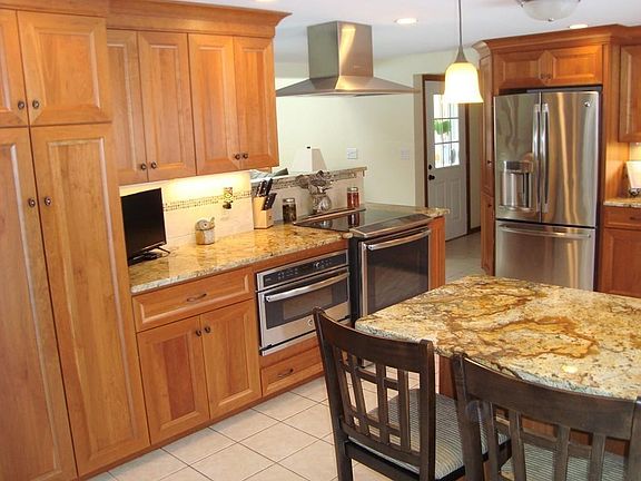 This meticulously maintained and updated Contemporary Cape, at the end of a cul de sac, will exceed your expectations!!! Eat-in chef's Kitchen includes stunning cherry soft close cabinets, granite counters, breakfast bar and top of the line SS appliances. Oversized sun filled Family Room has a wood burning fireplace and vaulted ceiling, open to the 2nd floor. A 1/2 Bath, Dining Room and Office (which could be a 4th/guest bedroom) complete the 1st floor. Upstairs you'll find the Master Bedroom and Master Bath, plus 2 additional Bedrooms which share a 2nd Full Bath. The finished LL offers space for a gym, playroom, man cave, etc. The Kitchen sliders open to a deck with a Jacuzzi and you are only a few steps away from the in-ground pool. The almost 5 acre level lot offers an abundance of privacy. The discerning buyer will appreciate the whole house generator, energy efficient solar panels, Leaf-Guard heated gutters and electric dog fence, as well as the young roof, furnace and central AC.